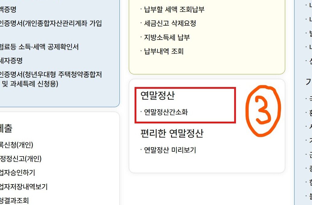 ○ 메뉴에서 ‘연말정산 간소화 서비스’ 선택.